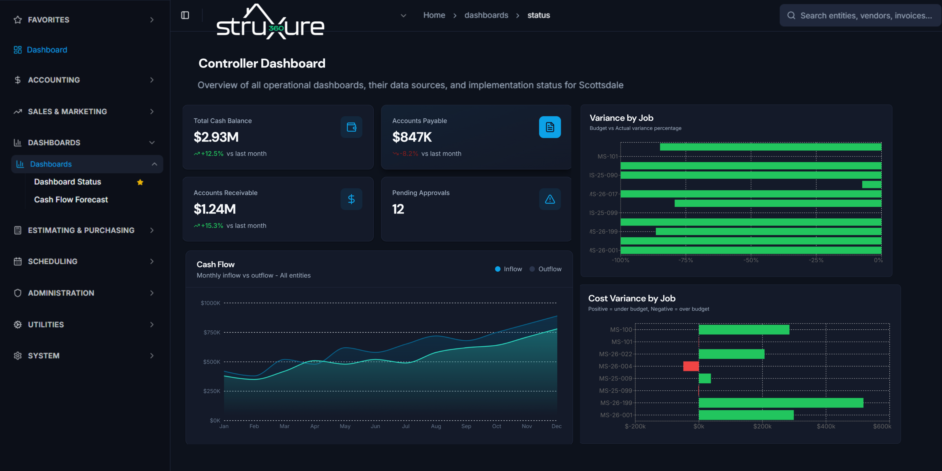 StruXure360 brings your financials, operations, project management, and field execution together in one connected, cloud-based platform. Every team works from the same system, with real-time visibility across every phase of the build.